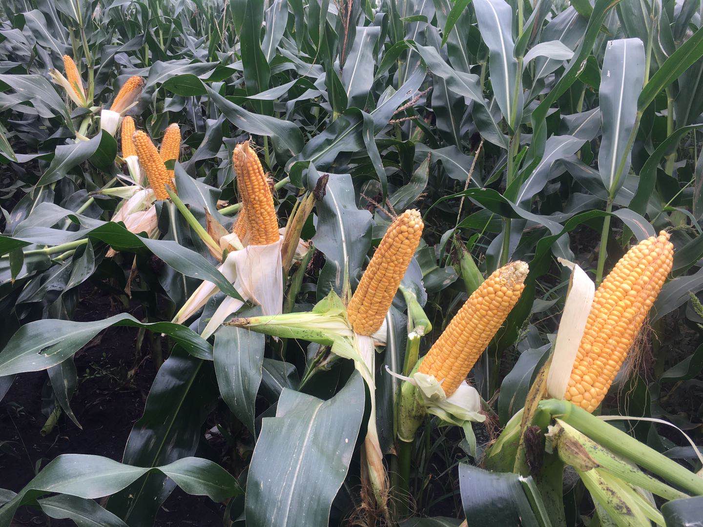 【特征特性】在適應(yīng)區(qū)出苗至成熟生育日數(shù)為107d左右,需≥10℃活動(dòng)積溫2020℃左右。株高230cm左右,穗位高80cm左右,成株可見(jiàn)12片葉。果穗筒型,穗軸白色,穗長(zhǎng)18.5cm左右,穗粗4.8cm左右,穗行1216行,籽粒偏馬齒形、黃色,百粒重36g左右。兩年品質(zhì)分析結(jié)果:容重762791g/L。